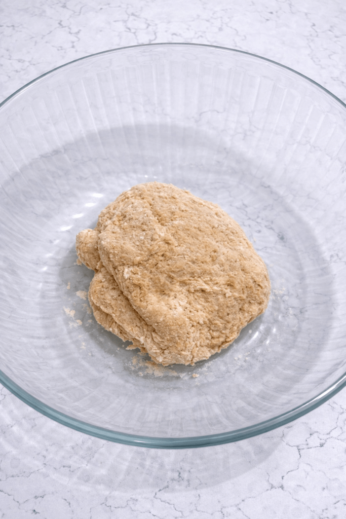 Add the flour and mix until combined. The dough will look a little rough and slightly dry—this is normal.
